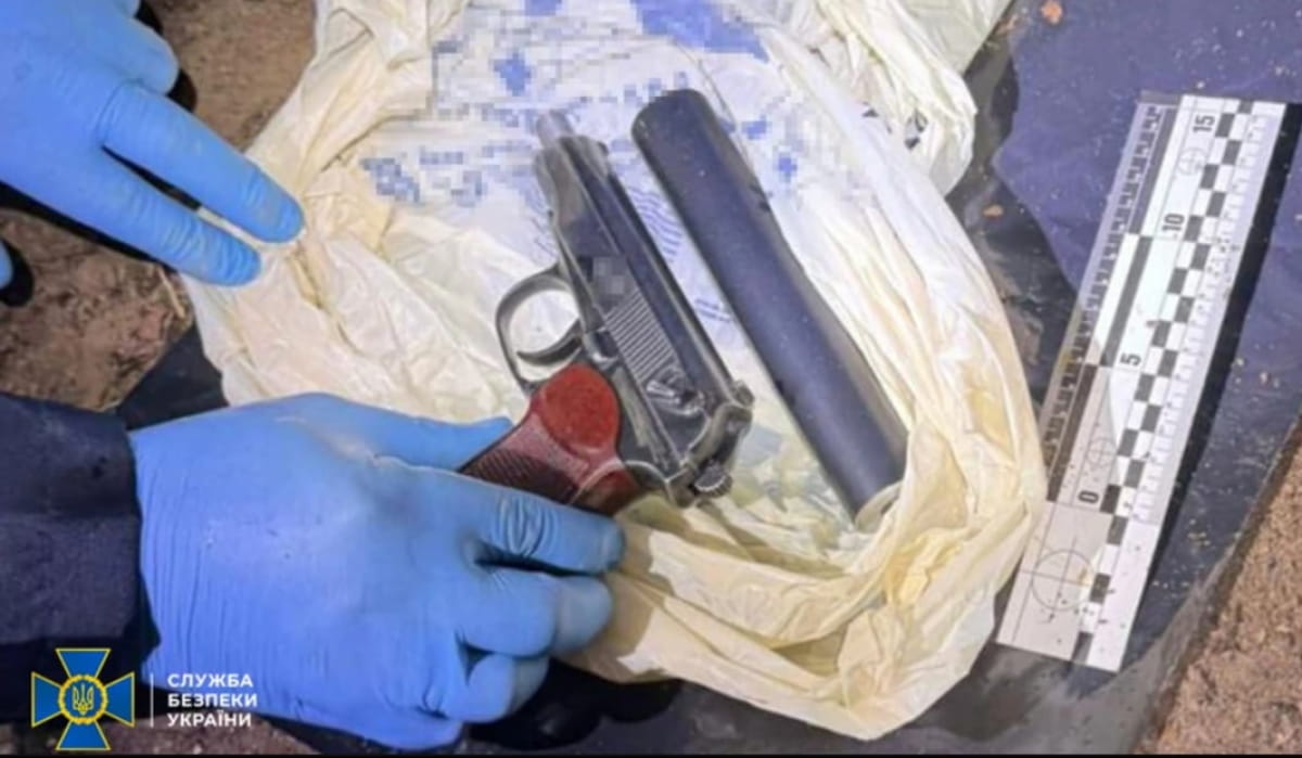 У спецслужбі стверджують, що також у ході слідчо-оперативних дій отримали відеозапис, на якому кілер облаштовує схрон з пістолетом у лісовій місцевості та "звітує" про це своєму кураторові з рф.