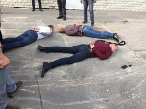 Затримання трьох керівників Центру поблизу столичного торговельного центру після отримання першого "траншу" хабара у розмірі $10 тис. Четвертого зловмисника правоохоронці "взяли" в одному з обласних центрів.
