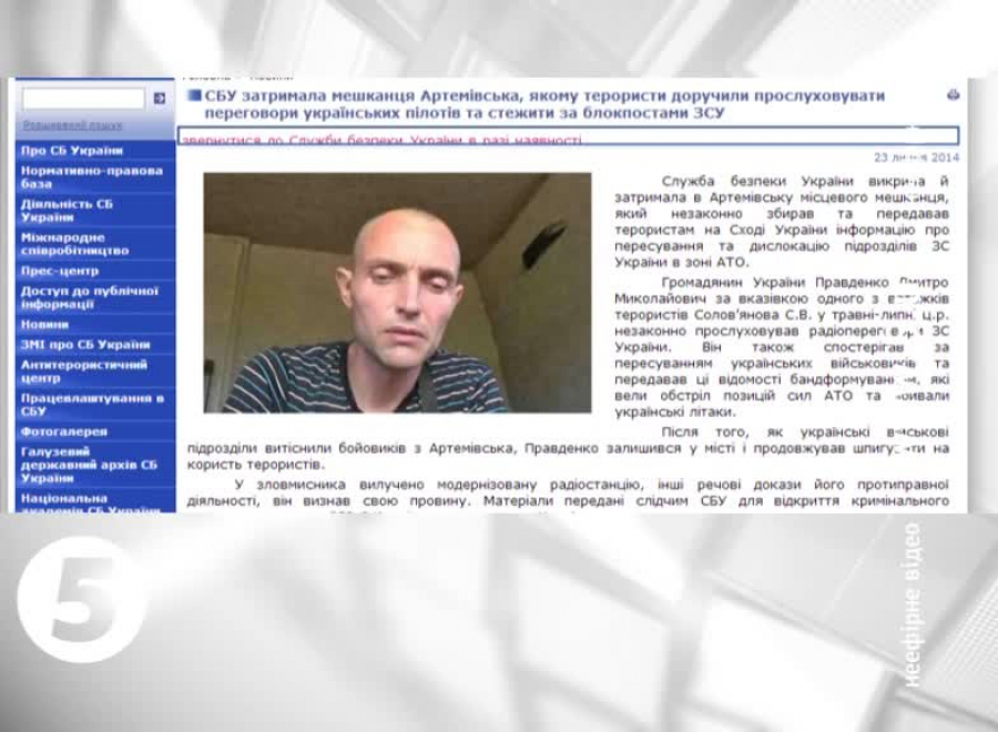 За даними відомства, зловмисник із травня незаконно прослуховував радіопереговори українських військових. Робив це за вказівкою терористів. Окрім того - чоловік спостерігав за пересуванням силовиків. А потому передавав цю інформацію бойовикам, які обстрілювали позиції АТО. У мешканця Артемівська вилучили модернізовану радіостанцію та інші докази. Чоловік визнав свою провину.
