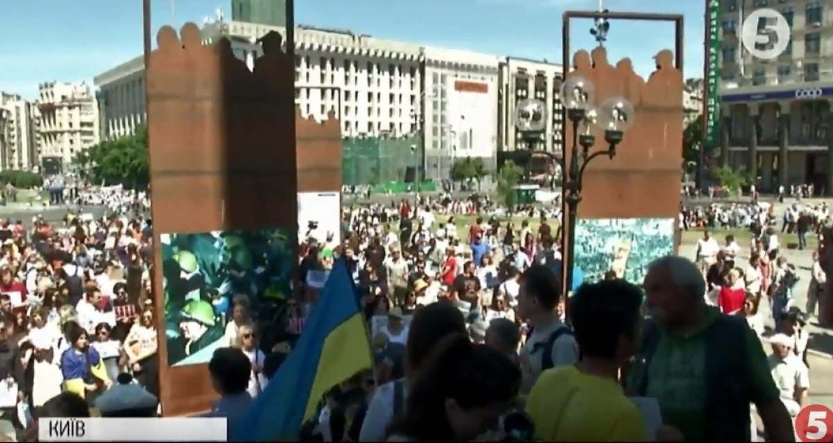 Віталій Устименко, організатор акції, каже: "Перша теза – звернення до керівництва РФ: звернення наших політв'язнів, друга теза – до країн великої сімки на саміті 8-9 червня в Канаді підняти питання наших політв'язнів. І третя теза – до всього світового товариства провести Чемпіонат світу РФ під гаслом "я вболіваю за політичних в'язнів".