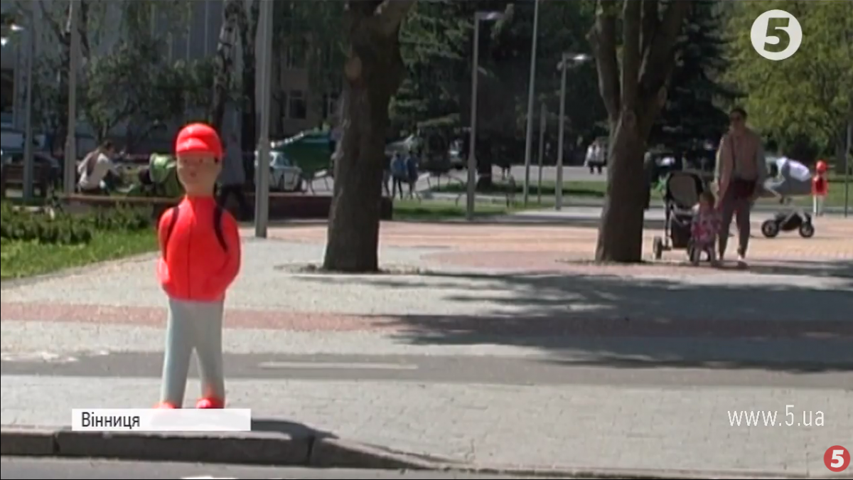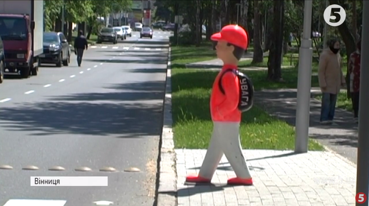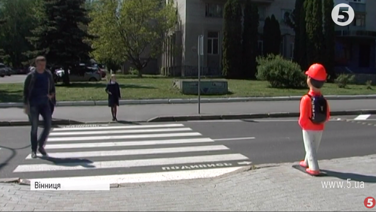 У Вінниці поблизу пішохідних переходів, що розташовані поблизу шкіл, встановлюють попереджувальні манекени. Вони мають вигляд школярів, які намагаються перейти дорогу. На наплічнику великими літерами написано "Увага", передає кореспондент "5 каналу".