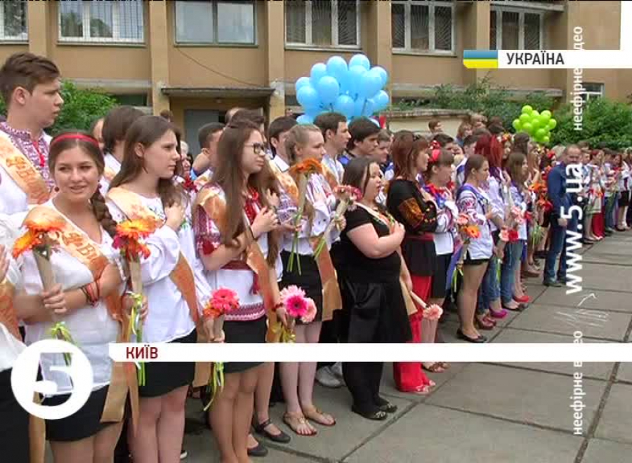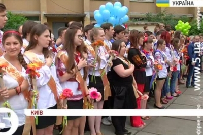 Дітлахи традиційно зібралися на урочисту лінійку. Головним атрибутом свята цьогоріч, окрім стрічки "випускник 2014", стали вишиванки, у які вбралися діти. Попереду у випускників іспити, тестування на вступ у Виші.