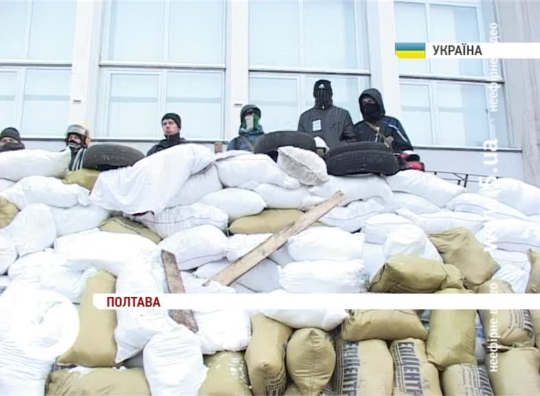 Вхід до приміщення забарикадували мішками зі снігом. Протестувальники вимагають відставки чинного уряду та скасування пакету, так званих «диктаторських» законів. Захоплення приміщень адміністрацій по всій Україні та зокрема у Полтаві називають вимушеним заходом. За фактом захоплення будівлі міліція порушила кримінальне провадження. Організатори протестів, зі свого боку, не вважають свої дії незаконними. Розходитися чи звільняти приміщення облради протестувальники не збираються. Втім, обіцяють стежити за порядком та не заважати роботі чиновників.