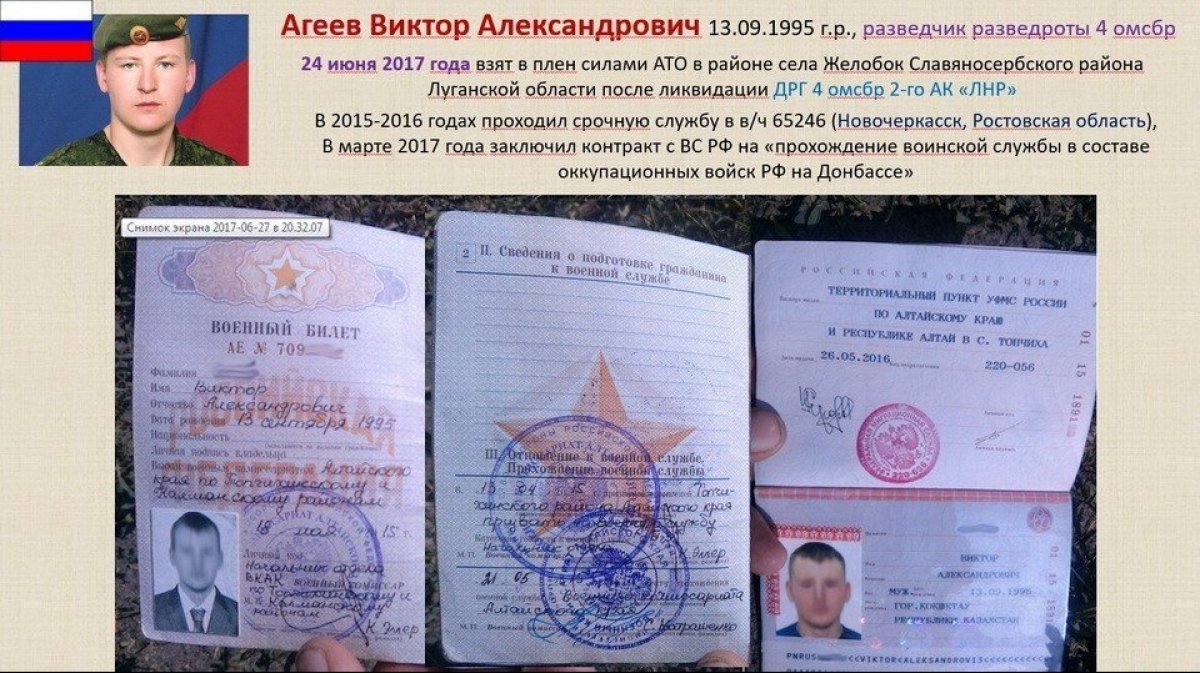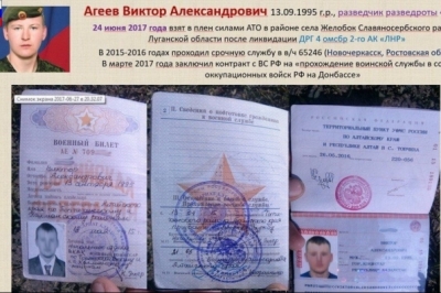 Як повідомляв 5.UA, 24 червня 2017 року українські військові затримали у складі ДРГ бойовиків, яку було знешкоджено під Жолобком у Луганській області, російського контрактника Агєєва. 28 червня в Міноборони РФ заявили, що захоплений у полон в Луганській області росіянин Агєєв минулого року "звільнився в запас".
