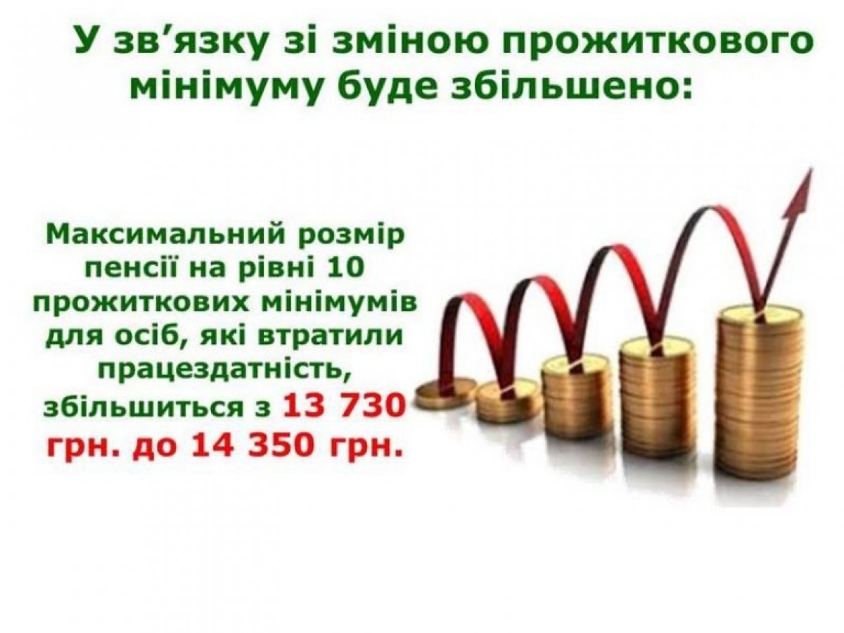 Як стало відомо такі зміни пов’язані зі зміною прожиткового мінімуму. Зважаючи на це, максимальний розмір пенсії буде збільшено на рівні 10 прожиткових мінімумів для осіб, які втратили працездатність - із 13 730 грн до 14 350 грн.