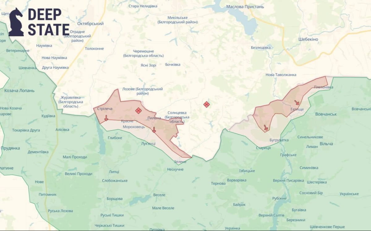 Водночас аналітики проєкту DeepState повідомляють, що ворог мав успіхи на деяких ділянках Харківщини. Зокрема повідомляють, що противник окупував Стрілечу, Пильну, Красне, Борисівку, Огірцеве та Плетенівку.