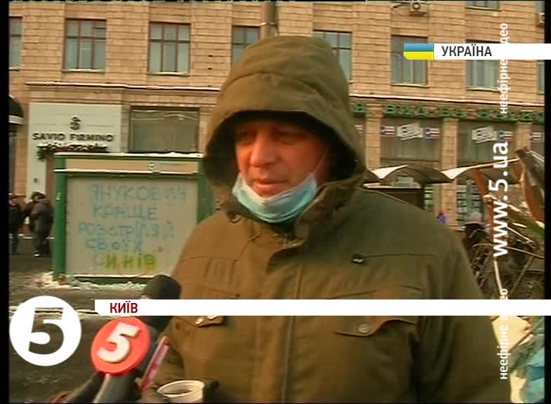 Мітингарі з Майдану Незалежності приходять проконтролювати ситуацію. Так само протестувальники з вулиці Грушевського ходять на Майдан, щоби перевірити там стан справ. Жодних конфліктів і сутичок немає. Мітингарі лишень перемовляються із силовиками, що стоять по той бік барикад, і намагаються переконати їх перейти на бік народу. Поменшало роботи і в медиків - кажуть, ніч минула майже спокійно. Між тим протестувальники запаслися шинами, аби у разі потреби можна було створити таку ж димову завісу, як кілька днів тому.