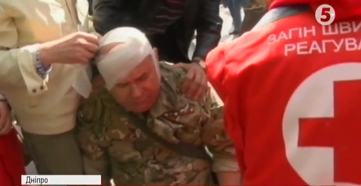 Як стало відомо, один з активістів отримав відкриту черепно-мозкову травму, ще десятеро зазнали травми обличчя. "Кулаком по обличчю вдарили. Хто? Тітушки. Безпосередньо саме хлопці спортивної зовнішності з помаранчевими квадратами на груді", – каже дніпрянин Олександр Буряк.