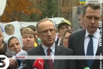Ян Томбінський, голова представництва ЄС в Україні: «Ми знайшли в ментільній добрій формі, зважаючи на обставини в яких вона сьогодні є. Але ми не будемо коментувати суть нашої розмови з пані Тимошенко. Нам треба це донести до нашого політичного керівництва».