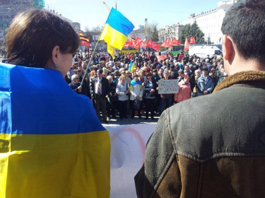 Громада згуртувалась в очікуванні провокацій з боку проросійських організацій. Напередодні виконувач обов’язків Херсонського міського голови Володимир Ніколаєнко заявив – сепаратисти готуються до проведення референдуму щодо приєднання Херсонщини до Російської федерації. Активісти засудили такі спроби, і висловили готовність боротися за рідну землю. Тим часом, мітингували й проросійські сили. Учасників було до двох сотень. Опонентів розділяв кордон міліції, які стали свідками гарячих дискусій.