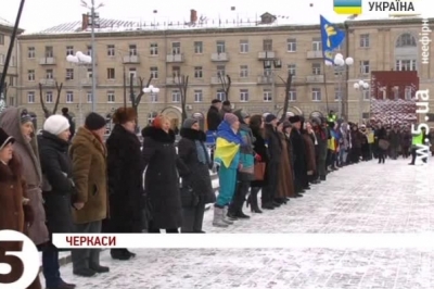 Учасники акції на Соборній площі трималися за руки та утворили живий ланцюг. Під час заходу люди вигукували патріотичні гасла. Судові виконавці спочатку намагалися завадити акції, попередивши її учасників про заборону масових зібрань. Утім, у сам захід ніхто не втручався. Активісти ж ні на які заборони не відреагували і продовжили мирний мітинг. На таку акцію, кажуть організатори, їх надихнуло свято Дня Соборності, та останні трагічні події на Грушевського в Києві.
