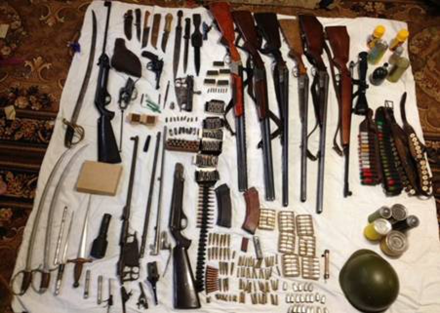 "У помешканнях затриманих правоохоронці виявили та вилучили нелегальну зброю: 5 мисливських рушниць, карабін з оптичним прицілом, пістолет системи "Наган", ручну гранату, електродетонатори, понад 800-т набоїв різного калібру, майже 1 кг пороху, 12 одиниць холодної зброї (ножі, штик-ножі, кавалерійські шашки), а також велику кількість запасних частин до стрілецької зброї", - повідомили у СБУ.