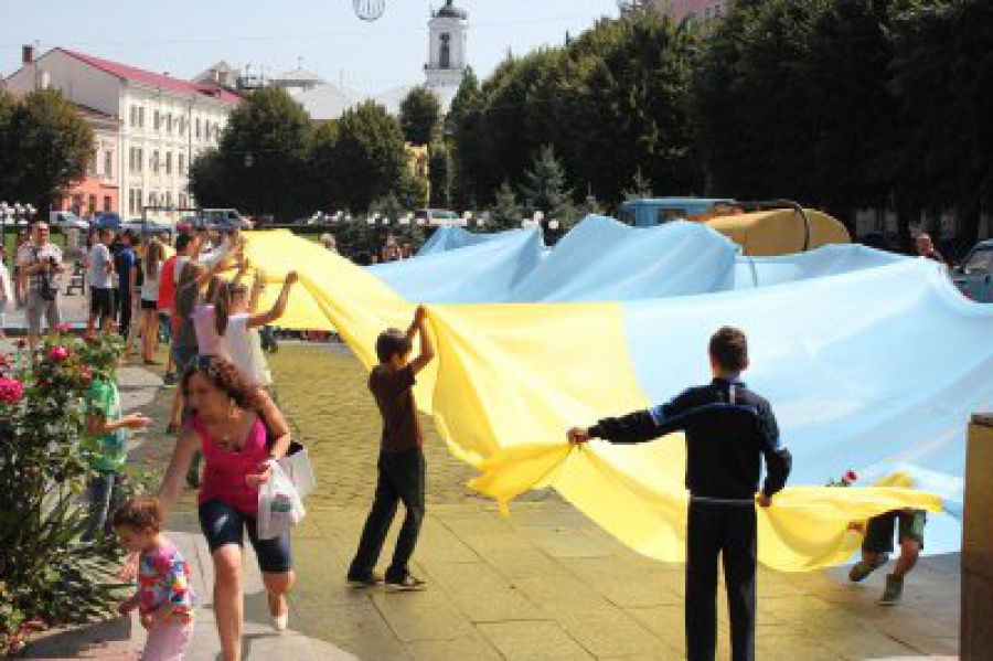 Організатори кажуть, цей прапор для них є символом єдності країни. Його нещодавно розгортали разом із дітьми, з Краматорська, які відпочивали в Чернівцях.
