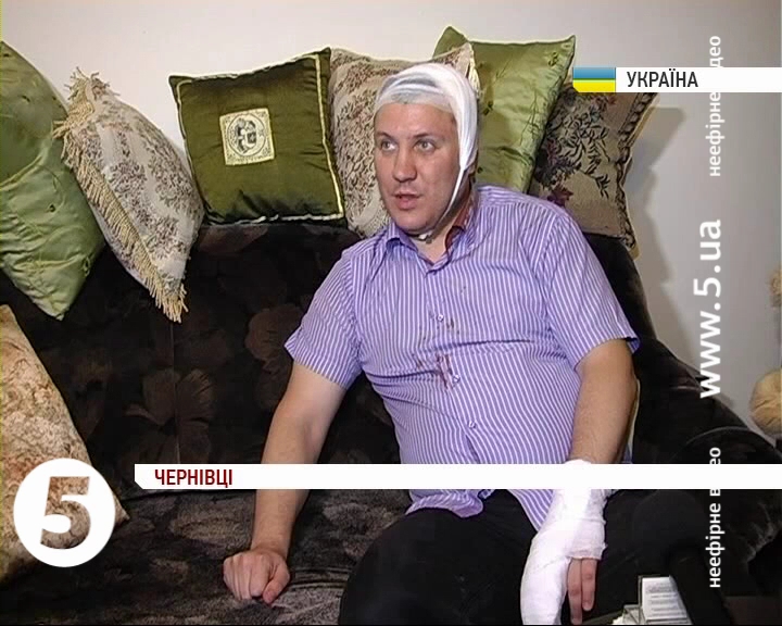 Назар Горук, депутат Чернівецької обласної ради: "Я тільки голову піднімаю, а він мені пшикає газовим балончиком в лице і починають бити. Причом б’ють не так, щоб налякати, а так, по голові чи то битою, чи трубою в щось замотаною. Тільки раз вдарили по спині, а в основному били по голові".