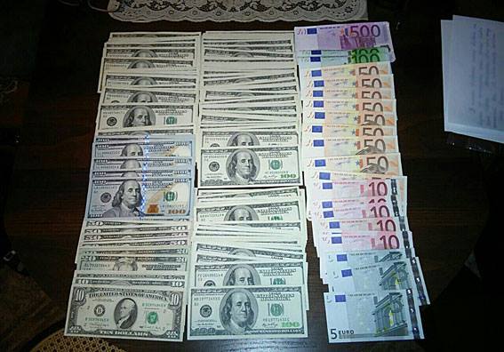 Чоловік та дружина друкували гроші номіналом 500 гривень просто в себе вдома. Під час обшуку поліцейські вилучили 7,5 тиc. грн, понад $18 тис., а також півтори тисячі євро.