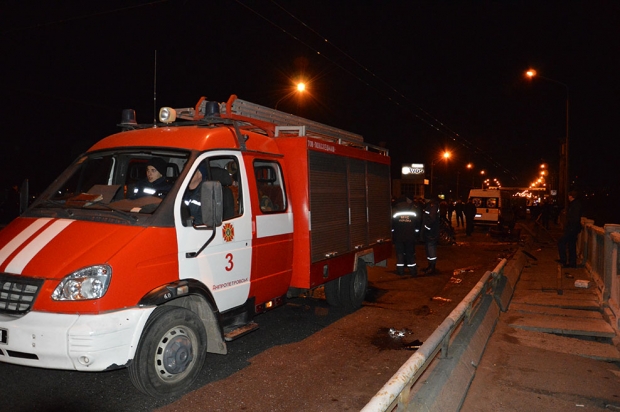 Водій і пасажир авто, що впало у Дніпро, загинули на місці, а водій і пасажир автомобіля Subaru отримали тілесні ушкодження.