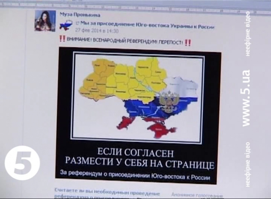 Служба безпеки України в Дніпропетровській області відкрила кримінальне провадження за фактом посягання на територіальну цілісність України. Підозрювані – троє членів проросійської радикальної організації. Чоловіки у соціальних мережах поширювали заклики до масових заворушень. А також пропонували поділити Україну на кілька республік. Зокрема, Крим, Донбас, Новороську та Дніпропетровсько-Слобожанську республіку.