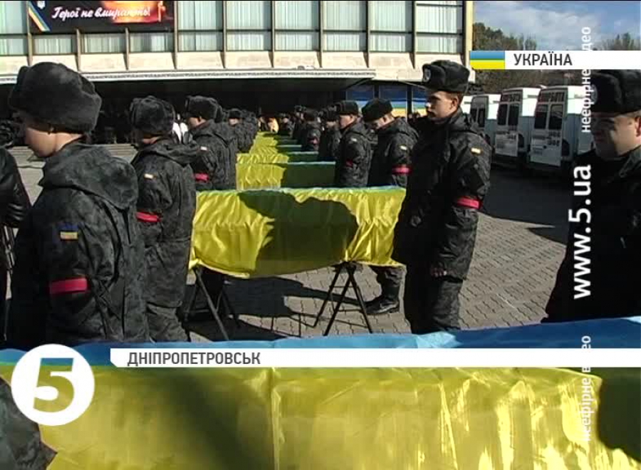 На прощання із загиблими на площу біля театру Опери та Балету прийшли близько двох сотень місцевих мешканців. Люди кажуть, відчувають внутрішню потребу віддати останню шану невідомим воякам, які відстоювали Україну від загарбників.