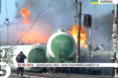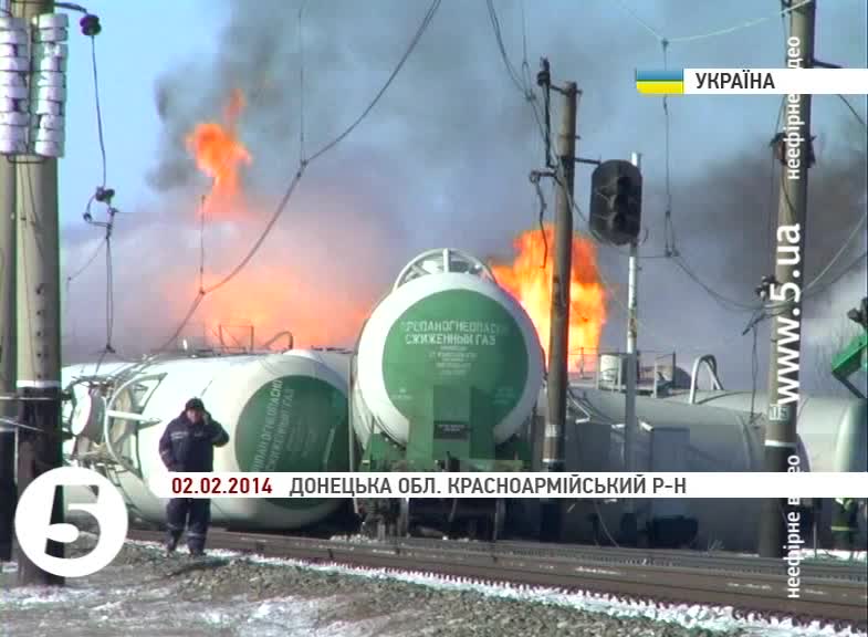 Ольга Черногор, начальник прес-служби УМВС на Донецькій Залізниці: «В результате нарушения со стороны машиниста локомотива правил эксплуатации транспорта могла произойти данная авария. Второе, чп произошло в результате правил эксплуатации жд транспорта при формировании поезда на станции формирования. Третья, при загрузки газа в цистерны, возможно была разгерметизация. Четвертая причина - чп произошло в результате нарушения работы линии электроснабжения между станциями удачная и межевая и пята версия - чп произошло в результате умышленного поджога с опасным грузом».