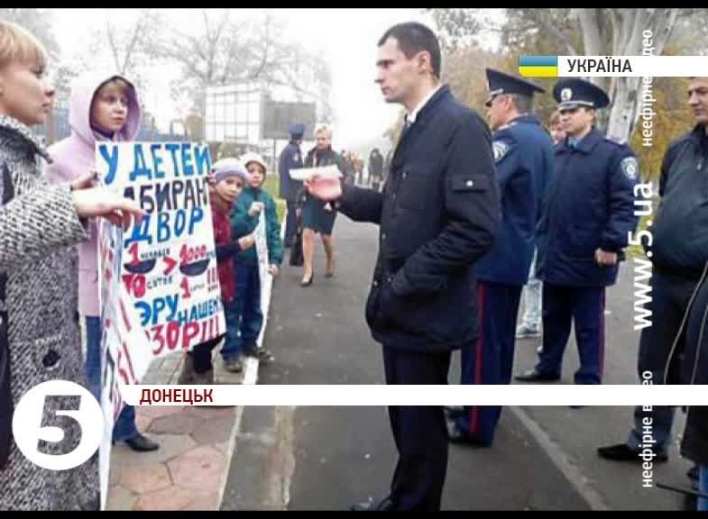 Біля виставкового центру, в якому має виступити президент, його чекали кілька обурених мешканок багатоповерхівки. Вони просили Главу Держави заборонити забудову дитячого майданчика біля їхнього будинку. Та Януковича жінки так і не дочекалися. Охорона попросила їх піти, а Президентові надіслати листа. Нагадаємо, сьогодні гарант візьме участь в шостому Міжнародному інвестиційному саміті з енергоефективності, ресурсозбереження та екобезпеки. Його виступ мав розпочатися годину тому, але учасники досі чекають на гаранта.