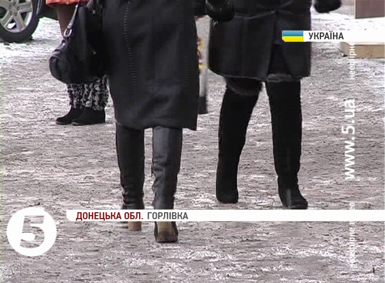 У Горлівці, щоб уберегтися від льоду на дорогах, - вулиці цілодобово посипають шлаком. А найрясніше вночі - щоб зранку уникнути ожеледиці. Містянам таке не до вподоби - кажуть і взуття псується, і бруд навкруги, і чорним сніг укрило.