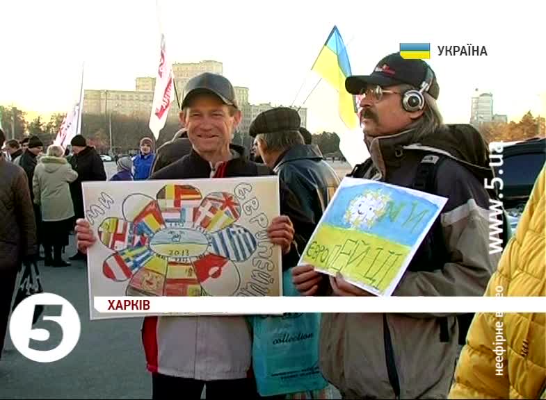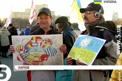 Олена Дюженко, учасниця акції: «Дуже мало часу залишилося до самого саміту, тому ми сьогодні вирішили вийти в Харкові на майдан і підтримати євроінтеграційний курс України. Майбутнє України – тільки в Євросоюзі».