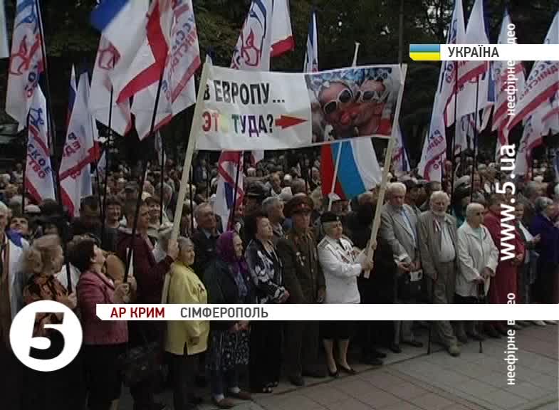 Мітингувальники: «За Таможенный союз! Это Беларусь, Казахстан, Россия. Вот, вместе объединиться. И Украина там чтоб была. И чтобы наш Крым был там».