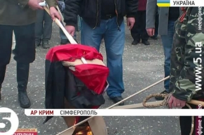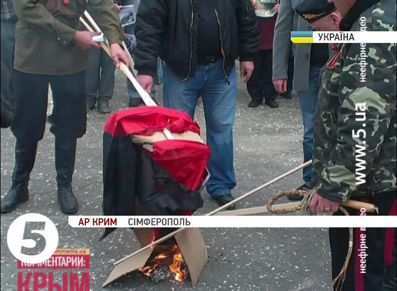Вимагали заборонити партію «Свобода» та зупинити нацизм в Україні. Акція тривала близько 15-ти хвилин. Наприкінці її учасники підпалили свої транспаранти разом із чорно-малиновим прапором УПА. Зробити це вдалося лише з четвертої спроби. Втім, стяг так і не розгорівся, і його затоптали.