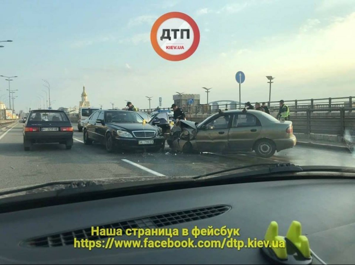 У неділю, 15 квітня, неподалік від Поштової площі у Києві сталася дорожньо-транспортна пригода за участю автомобілів Mercedes та Daewoo Lanos. Про це повідомляє dtp.kiev.ua.