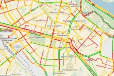 Так, червоним кольором на карті позначений високий рівень заторів здебільшого у центральній частині міста. Зокрема, у районі вулиці Саксаганського, Басейної, Шовковичної, частини бульварів Тараса Шевченка і Лесі Українки, та інших.