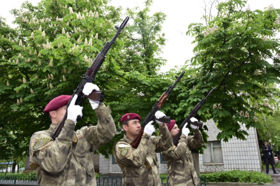 "9 травня вся країна святкувала День перемоги над окупантами. У цей день 2 роки тому "подонки", іншими словами їх не назвеш, здійснили напад на будівлю міліції на вул. Георгіївський. Саме в той день, коли мільйони людей віддавали шану загиблим у війні, ці нелюди вирішили влаштувати напад. Загинули співробітники міліції, Нацгвардії, ЗСУ. В Маріуполі вперше дали відсіч терористам у військовій частині 3057, 9 травня саме тут відбулось бойове зіткнення" – заявив начальник ГУ НП в Донецькій області В'ячеслав Аброськін.