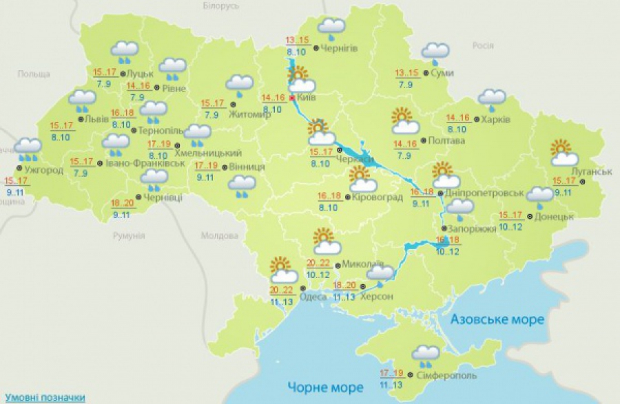 Температура вночі буде +8..+10°С, а вдень підніметься до +14..+16°С.