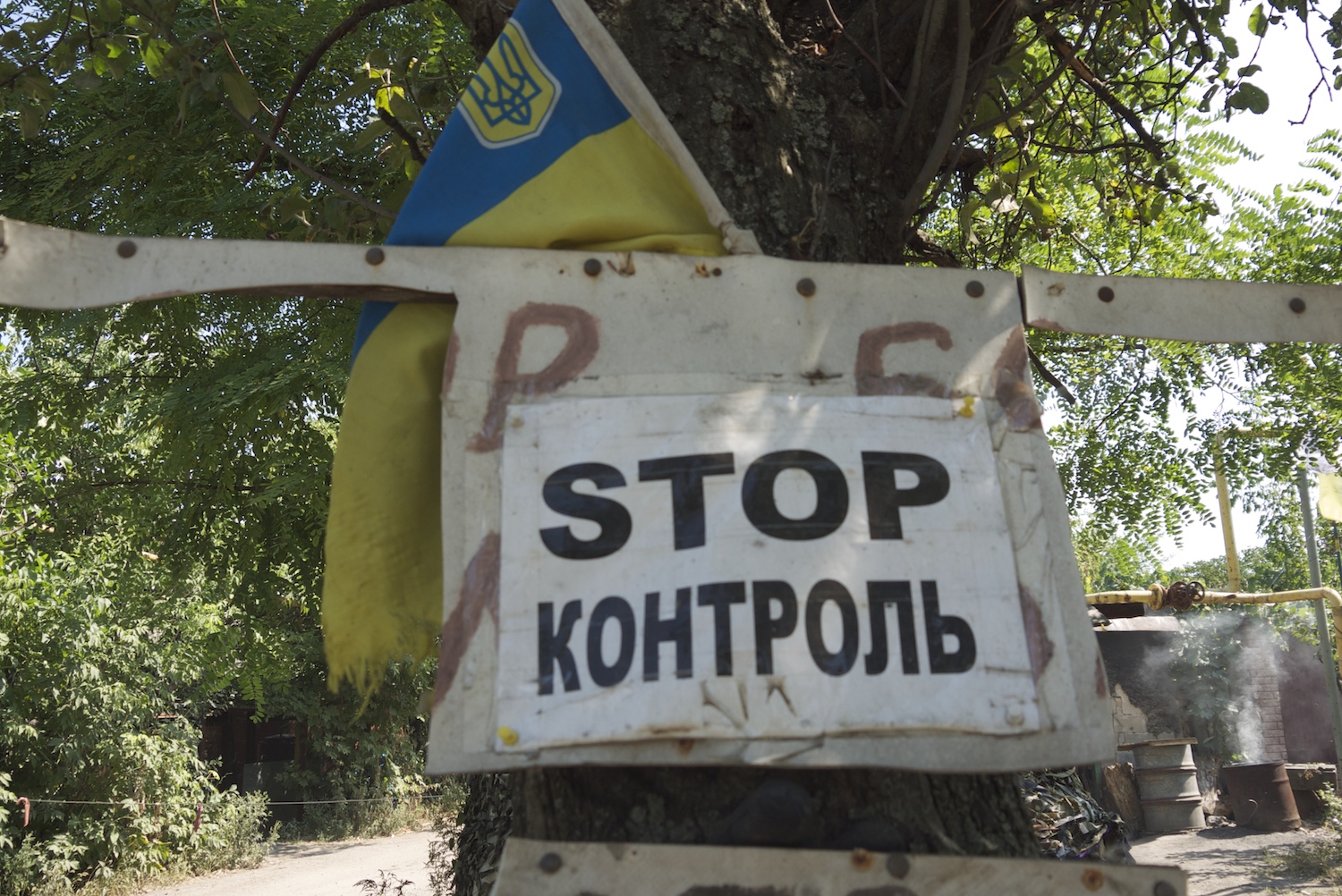 На блок-посту "Республіка Міст" ранком відносно тихо, проте бійці показують воронки від обстрілів і розповідають про постійну ворожу розвідку безпілотниками. Кажуть, що за останній час не було жодного вечора, щоб не прилетів від терористів дрон.