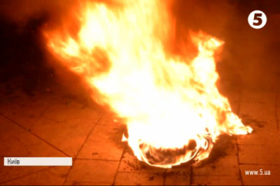 Напередодні в Києві відзначали День Гідності та Свободи. Утім, не минулося без заворушень. Деякі учасники акції, так званого віче, пішли до Європейської площі по покришки, а правоохоронці намагалися не допустити запалювання шин. Утім, кілька покришок такі змогли підпалити із поясненням, що вони були одним з атрибутів Революції Гідності.