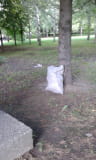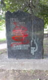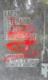 Колір фарби – червоний. Крім того, поруч із пам'ятним знаком було виявлено мішок із сміттям, який, імовірно, лежав там вже тривалий час.