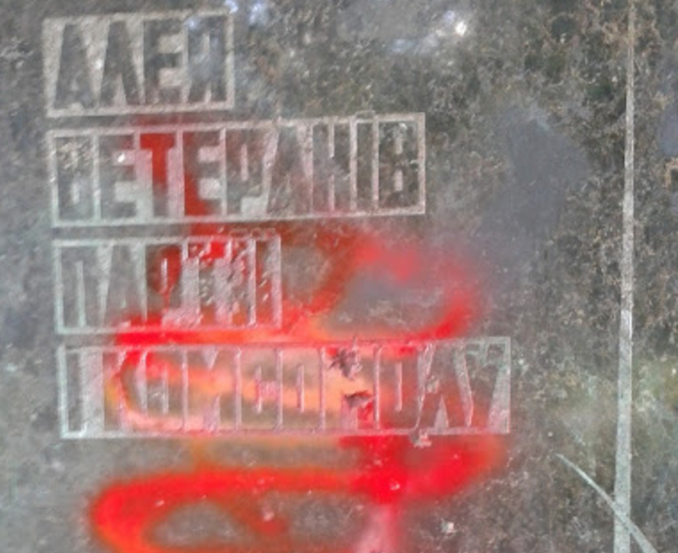 Станом на сьогодні, жодна організація не взяла на себе відповідальність за обливання фарбою пам'ятного знаку "Алеї ветеранів партії і комсомолу".