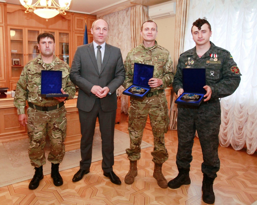 "Мав за честь привітати (бійців – Ред.) 2 добровольчого батальйону Національної гвардії України, сформованої із бійців Самооборони Майдану, і гвардійців Василя Ковальчука та Івана Журавльова, котрі 5 липня першими зайшли в Слов’янськ, зняли прапор терористів (прапор ДНР на міськраді – Ред.) і підняли державний прапор України над міською радою Слов’янська. Символічно, що прапор над Слов’янськом підняли добровольці Самооборони Майдану", - написав Парубій.