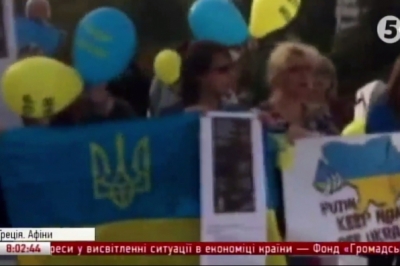 Як стало відомо, під час акції мітингарі також інформували перехожих про ситуацію в Україні. Зокрема, вони підготували листівки грецькою і англійською мовами.