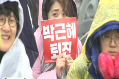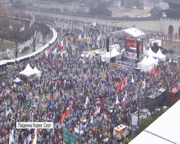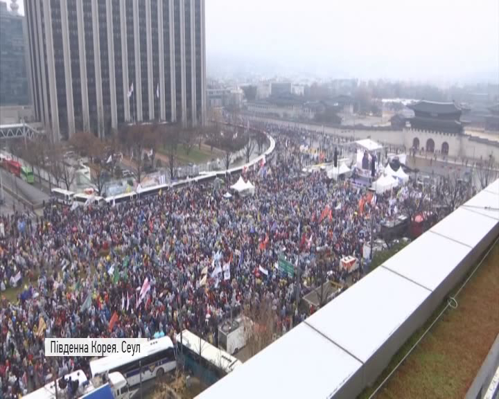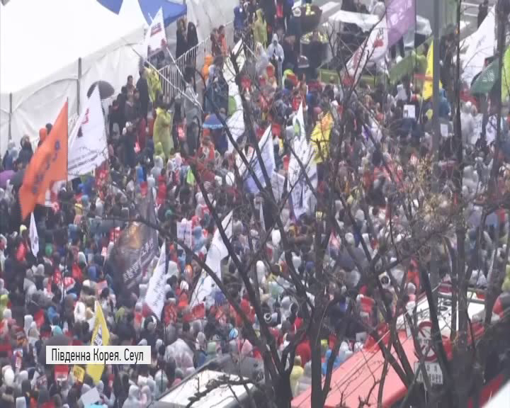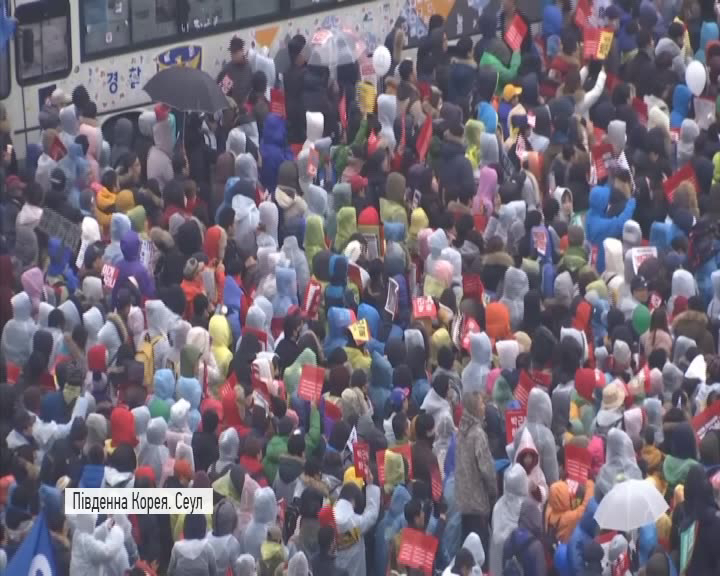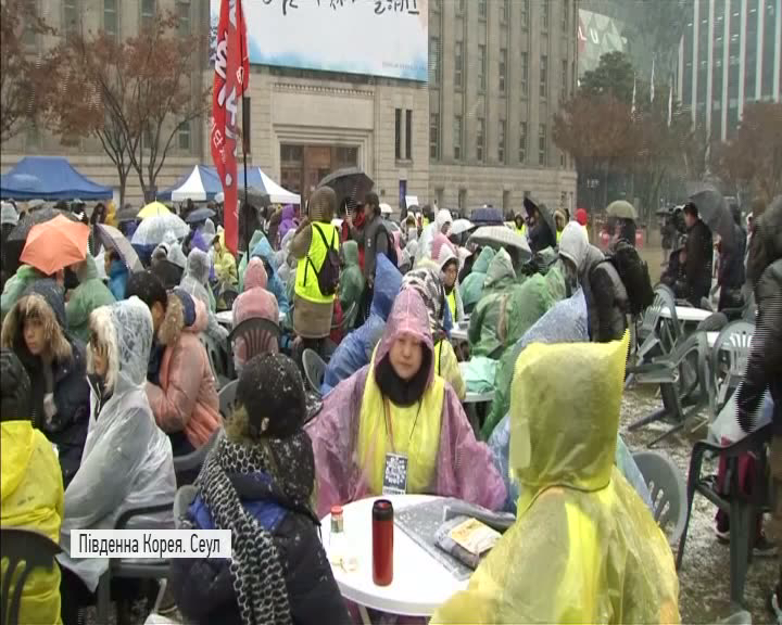 Незважаючи на холодну погоду та сніг з дощем у Сеулі знову відбулась акція протесту з вимогами відставки президента Південної Кореї Пак Кин Хе – її обвинувачують у потуранні втручання подруги в державні справи. Та нібито читала важливі документи та редагувала тексти виступів лідерки держави, хоча жодної державної посади не обіймала.