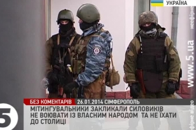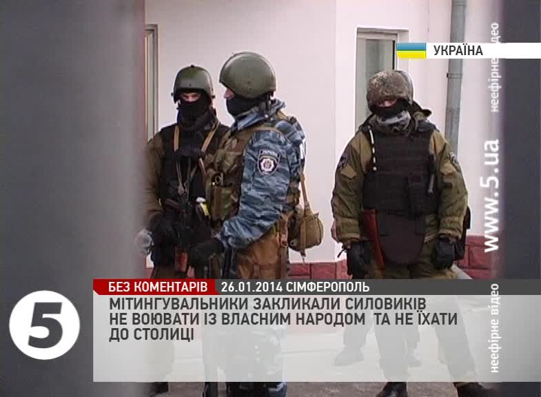 Леонід, учасник Євромайдан-Крим: «Мы собрались здесь, чтобы сказать, что «Беркуту» не место в Киеве и пусть он возвращается домой в Крым, где мирно и где никто никого не бет. И в мыслях этого нет. А вот эти ребята пришли, они , наверне, хотят еще больше крови. Они не в курсе, что происходит в Киеве».