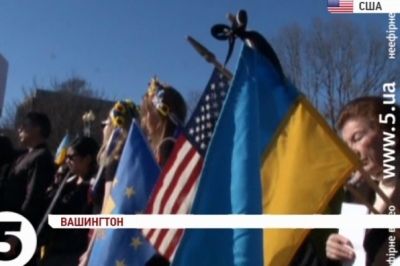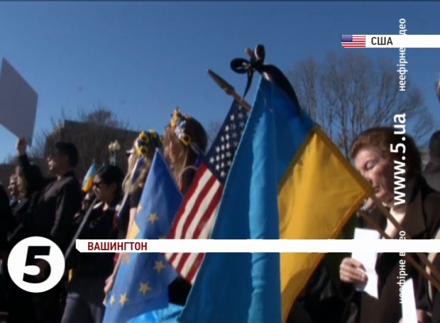 Чимало жінок прийшли у традиційних українських віночках, люди тримали в руках прапори та плакати. Вони закликали уряд США підтримати боротьбу України за демократію та свободу. Учасники мітингу привітали імпічмент Віктору Януковичу та згадали загиблу «Небесну сотню».