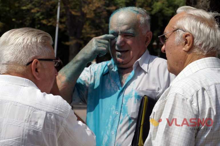 Одними словами не обмежилися. Кількох учасників зустрічі облили зеленкою, а запланований захід не відбувся.
