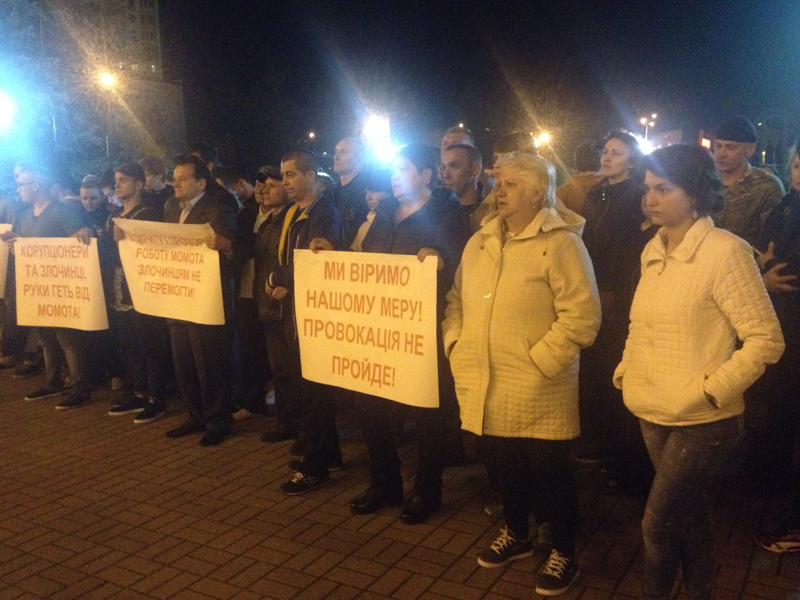 У четвер, 14 квітня, близько 22:00 біля приміщення міської ради Вишгорода в Київській області відбулася акція на підтримку голови Олексія Момота, якого прокуратура підозрює у вимаганні хабара від забудовника. Кілька десятків активістів зібралися з плакатами на площі із закликами відпустити голову міста. Про це повідомляє кореспондентка 5.ua, яка стала свідком заходу.