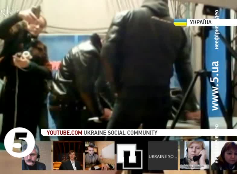 Зі слів працівників, до приміщення в якому зберігається апаратура агенства увірвались вирізавши болгаркою двері - 14 правоохоронців, серед них і судові виконавці. Очевидці кажуть, без жодних документів і відповідних ордерів ті почали опис апаратури. Дирекція ТРК Моріон, через яку і транслюється Юкрейн Соушл комюніті, пов’язує інцидент із трансляціює євромайданів, а також із приналежністю депутата, в якого агенція орендує приміщення, до опозиційних сил. У Євпаторійській міліції про інцидент знають. Кажуть: на прохання виконавчої служби виділили лише двох співробітників. Про причини наразі не повідомляють.