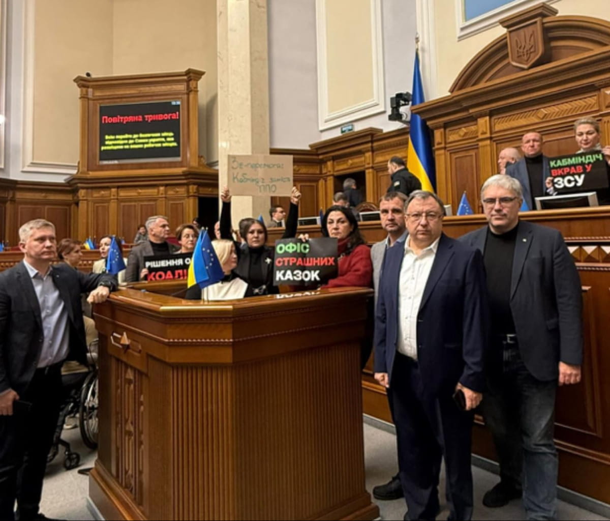 Фракція другий день поспіль блокує трибуну, вимагаючи замість декоративної відставки двох міністрів-"стрілочників" звіту та відставки всього корупційного уряду.