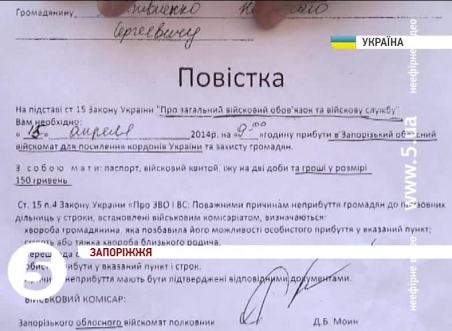 Військові кажуть документ – фальшивка. Адже справжня повістка – зовсім інша за формою та й вручають її у руки призовника під розпис. Військові допускають, що проросійські активісти намагаються дестабілізувати ситуацію у регіоні та викликати обурення у населення щодо здирництва для армії і таким чином викликати бойкот серед призовників.