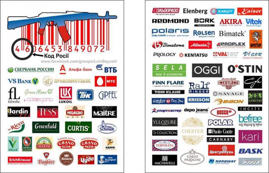 Серед українських користувачів соціальних мереж поширюється кампанія про необхідність бойкотувати товари та бренди російських торгівельних марок. Як повідомляє користувач Otar Dovzhenko, ця акцыя буде мати, насамперед, моральний зиск серед українських громадян та не потребує особливої роз’яснювальної роботи.