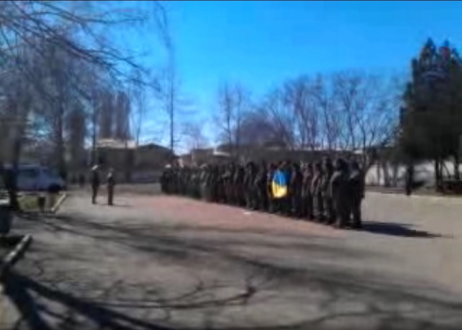 Російські окупанти стояли віддалік, і у безпосередній сутичці участі не брали. Натомість, проросійські "козаки", яких українські солдати називають "тітушками", вели себе дуже агресивно, зривали з будівлі українську символіку і били вікна – так описує події очевидець. Після відступу "тітушок" українці вийшли з будівлі, і, ймовірно, розпочали переговори з окупантами.