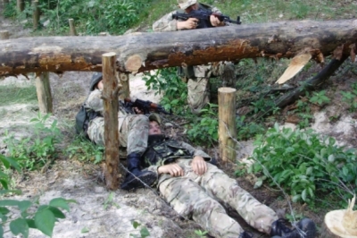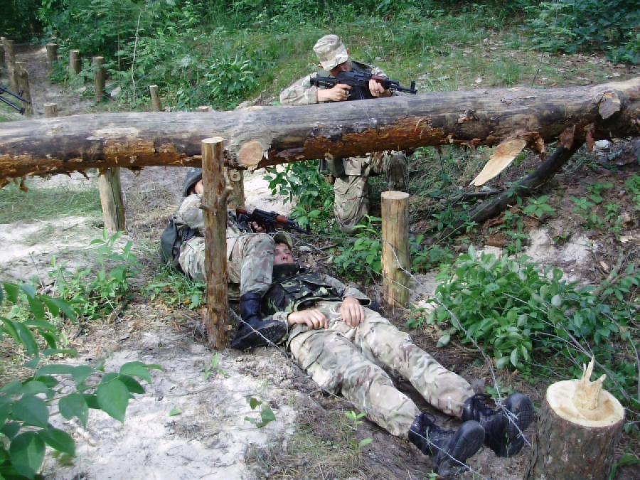 Експерти НАТО, міжнародної місії Червоного хреста та ОБСЄ навчають під Києвом бійців Національної гвардії та батальйону "Донбас" рятувати поранених у гарячих точках. Опрацьовують реальні умови бою та поранення людини.