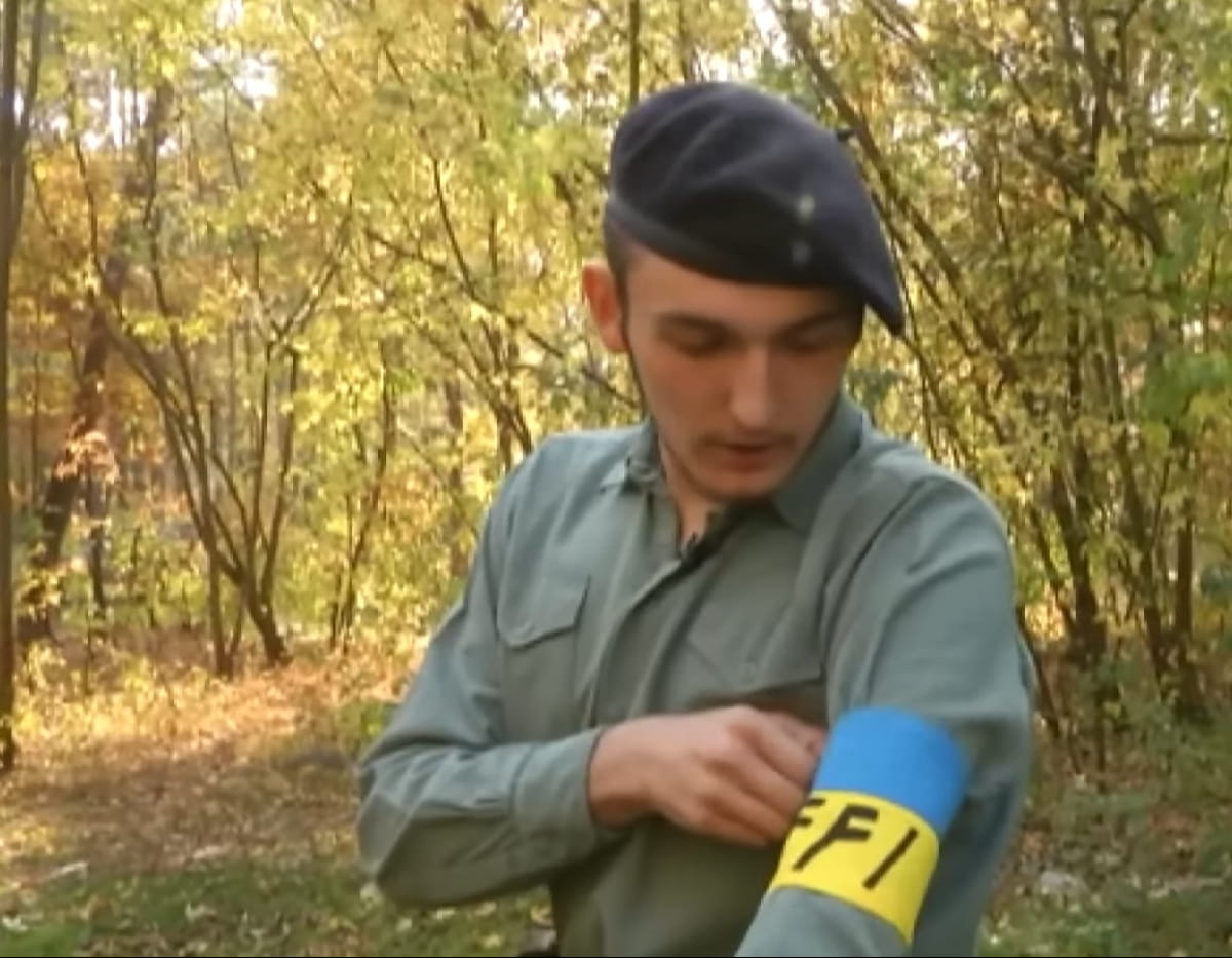 "Також був приклад синьо-жовтої пов'язки, яку носив Перший український батальйон імені Богуна. Це синьо-жовта пов'язка з написом FFI – Внутрішні війська Франції. Для чого вони були використані? Щоб не переплутати своїх. Тому що український батальйон був повністю в німецькій формі. І французи по максимуму намагалися дати хоча б берети. Але пов'язка була найпершим чинником, який казав, що ти свій", – розповів керівник історичного клубу "Вільна Франція" Владислав Садовий.